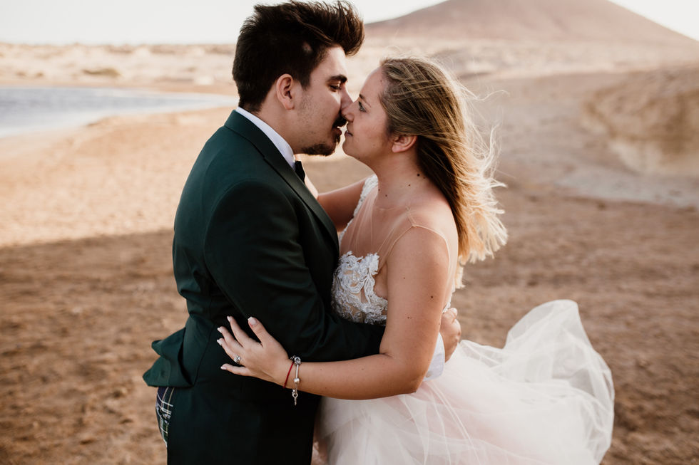 This couple came from Romania for their honeymoon in Tenerife and decided to enjoy a wreck the dress, post wedding photo shoot on one of our gorgeous beaches in the South. This couple were not afraid to get their feet wet in the Atlantic! They were a super fun couple, laughing and joking and enjoying a moment together during one of Tenerife's iconic sunsets.